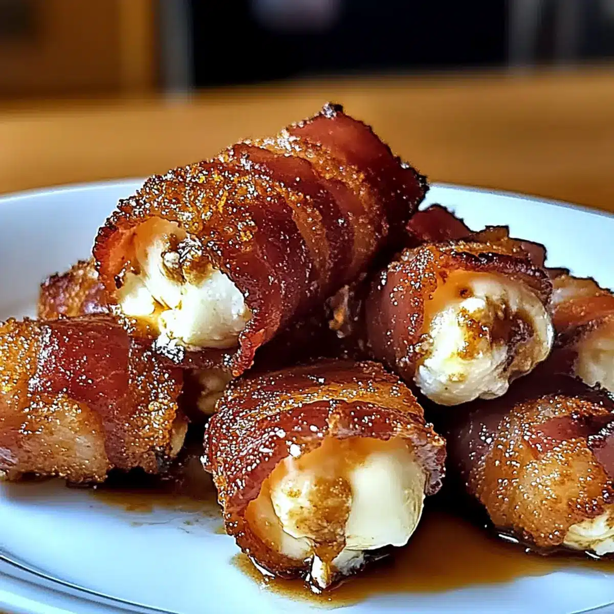 Crispy Bacon Mozzarella Poppers with Sweet Maple Magic