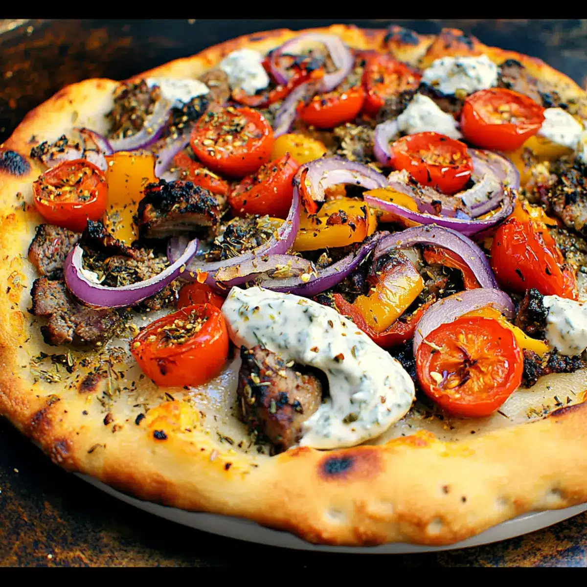 Gyro Pizza with Tzatziki Drizzle: A Taste of Mediterranean Bliss