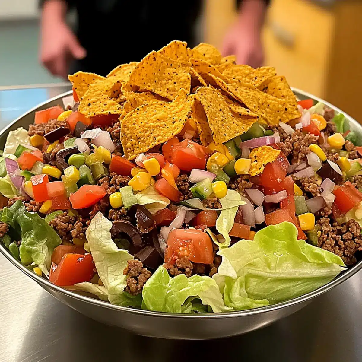 To keep your salad fresh and crisp, allow the cooked protein to cool slightly before layering it over the lettuce. This prevents wilting. Layering ingredients in the right order, with the Doritos on top, also helps preserve the crunch of each component until you’re ready to serve!