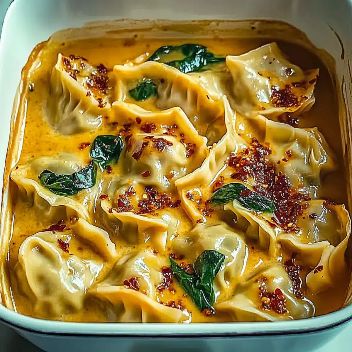 This Dumpling Bake is ideal for busy cooks looking to save time! You can prepare the creamy sauce and layer the spinach up to 24 hours in advance. Simply whisk together the coconut milk, red Thai curry paste, soyaki, and garlic, then layer the spinach over the sauce in a tightly covered baking dish to maintain freshness. When you’re ready to enjoy your meal, just arrange the frozen dumplings on top and bake as directed. If you’d like to store leftovers, they can be kept in an airtight container for up to 3 days without sacrificing flavor or texture. This way, you’ll have a delicious one-dish meal ready to go with minimal effort!