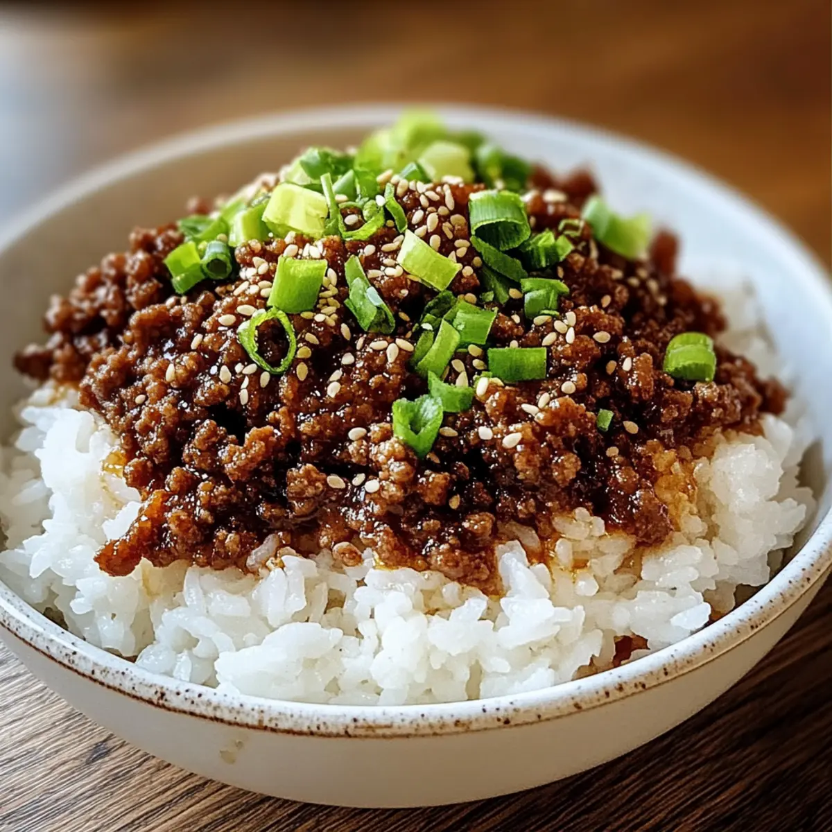 Spoon the Ground Beef Hot Honey Bowl into individual bowls, garnishing each serving with a sprinkle of chopped green onions and sesame seeds. This final touch adds color and a crunchy contrast, making your meal not only delicious but visually appealing too.